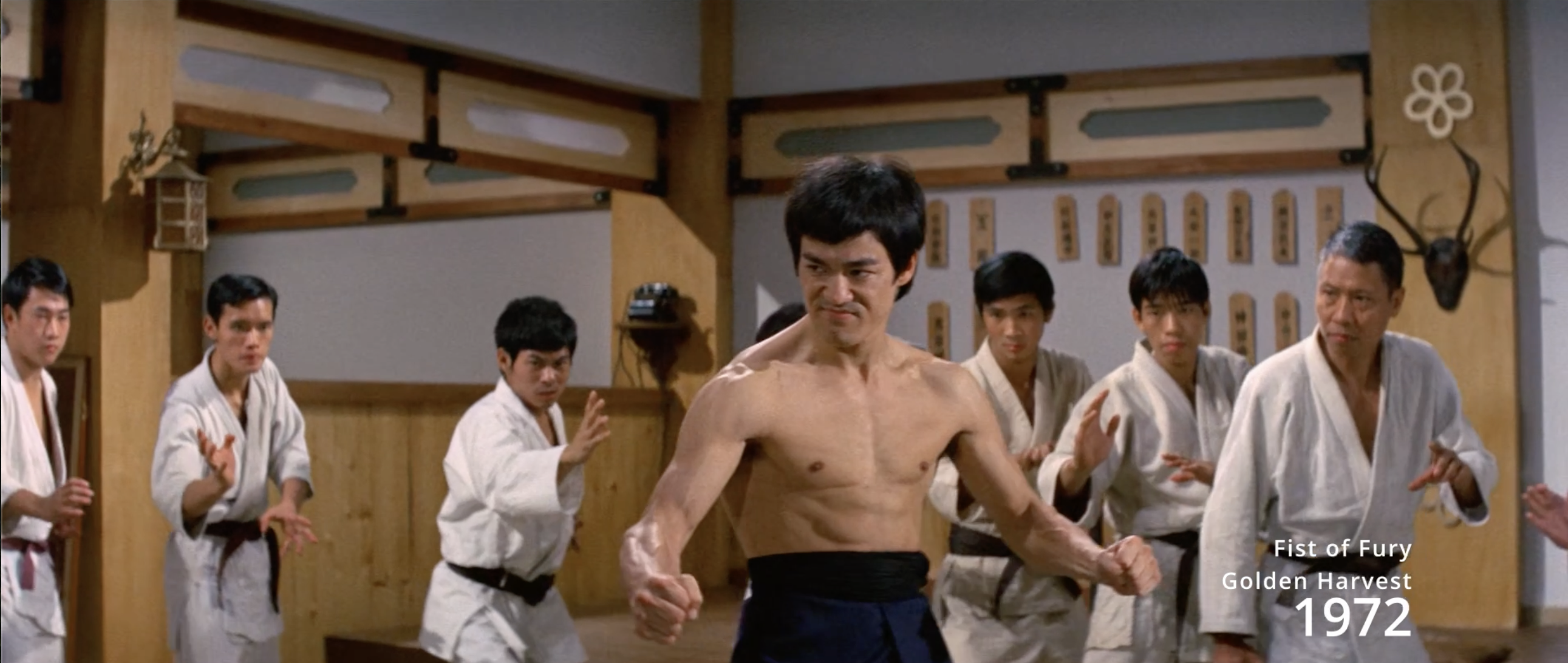 A video montage of Bruce Lee’s action scenes in television and movies.